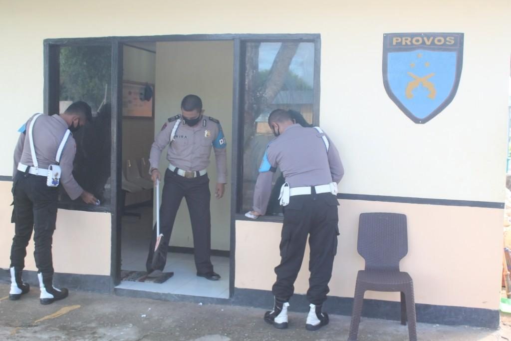 Kerja bakti diruangan Sipropam Polres Maluku Tenggara Barat tersebut, dipimpin langsung Kasi Propam Aipda A.Nomlene. Pembersihan itu dimulai dari ruangan dalam kemudian luar ruangan.