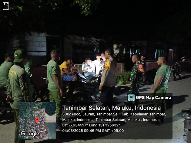 Patroli yang dilaksanakan pada Wilayah Desa Lauran, Kecamatan Tanimbar Selatan ini dengan melibatkan Babinsa maupun Linmas. Dengan sasaran utama yaitu pada pemukiman Warga, pusat keramaian hingga tempat berkumpulnya Warga Masyarakat yang masih beraktifitas di malam hari, Selasa (04/03/25) malam.