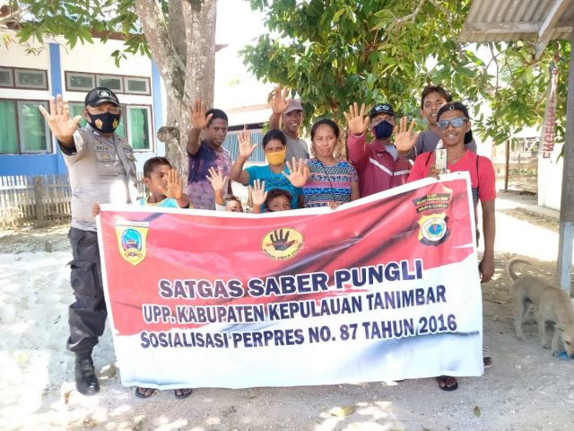 Tribratanews.polrestanimbar.com – Polda Maluku, Polres Maluku Tenggara Barat, Kamis 05 November 2020, pukul 12.02 wit bertempat di depan rumah Bapak Felis Mitakda RT.03 Desa Bomaki Kecamatan Tanimbar Selatan, Kabupaten Kepulauan Tanimbar Bhabinkamtibmas Desa Bomaki Bripka S.E.S. Mitakda melaksanakan giat Sosialisasi Perpres Nomor 87 Tahun 2016 tentang Satgas Saber Pungli (Satuan Tugas Sapu Bersih Pungutan Liar) kepada warga RT.03 Desa Bomaki Kecamatan Tanimbar Selatan Kabupaten Kepulauan Tanimbar.