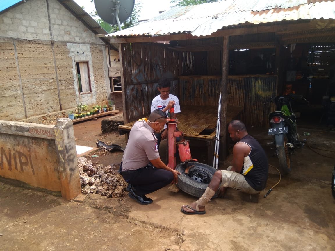 Tribratanews.polrestanimbar.com – Polda Maluku, Polres Maluku Tenggara Barat, Selasa 09 Juni 2020, Pukul 13.00 wit bertempat di Desa Themin Kecamatan Wermaktian Kabupaten Kepulauan Tanimbar Bhabinkamtibmas Desa Themin Bripka J. V. Andreas melaksanakan sambang dan monitor giat masyarakat pada bengkel milik bapak Tenggo Themin serta sampaikan pesan – pesan Kamtibmas dan New Normal.