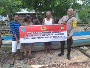 Tribratanews.polrestanimbar.com – Polda Maluku, Polres Kepulauan Tanimbar, Bhabinkamtibmas desa Watmasa, Polsek Wuarlabobar Bripka Hendra J. Halik lakukan Sosialisasi Saber Pungli kepada salah satu kelompok warga desa. Kamis (22/09).