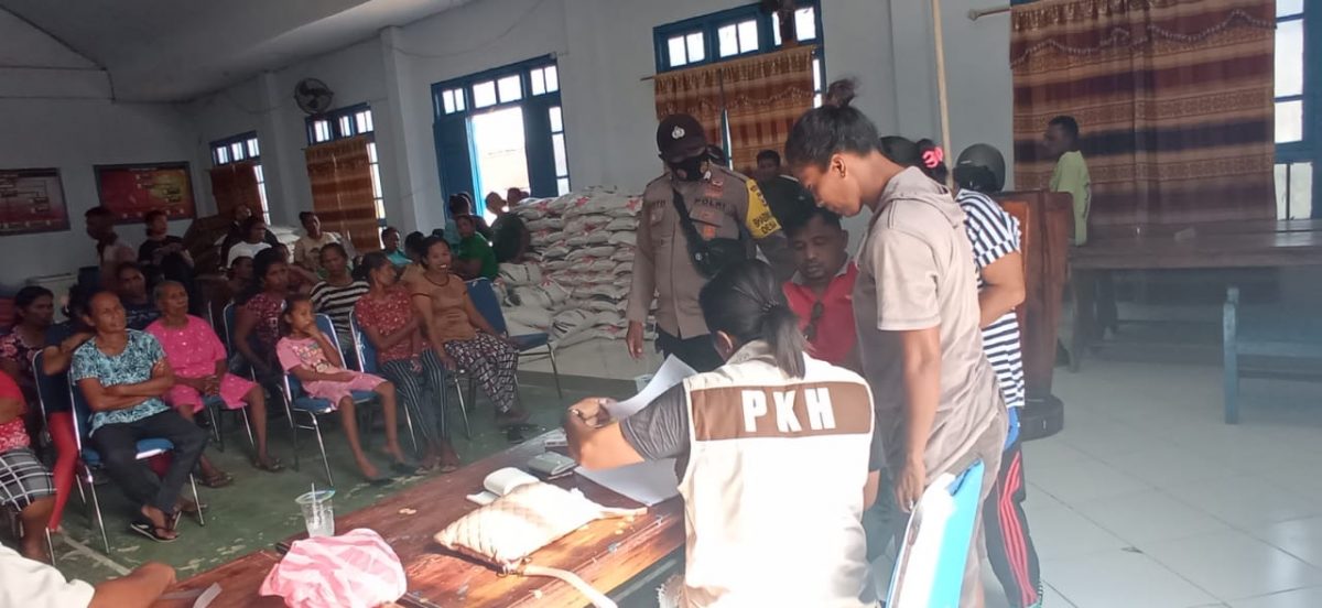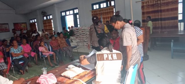 Tribratanews.polrestanimbar.com – Polda Maluku, Polres Maluku Tenggara Barat, Jumat 13 November 2020, pukul 15.00 wit bertempat di Desa Adaut Kecamatan Selaru Kabupaten Kepulauan Tanimbar Bhabinkamtibmas Desa Adaut Brigpol M. I. Lambiombir melaksanakan giat pengamanan pembagian bantuan beras 15 kg kepada masyarakat Desa Adaut yang mendapatkan bantuan PKH di Balai Desa Ngri Mase Desa Adaut jumlah penerima PKH berjumlah 318.
