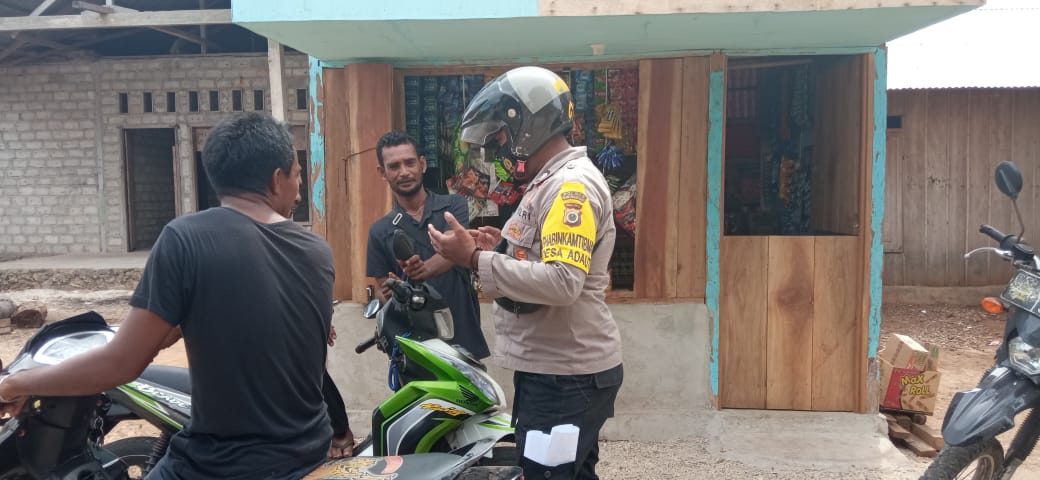 Dalam giat kunjungan tersebut bhabinkamtibmas menyampaikan arahan tentang Edukasi, Sosialisasi dan Himbauan Pendisiplinan penerapan protokol kesehatan pencegahan Covid-19 Adaptasi Kebiasaan Baru.