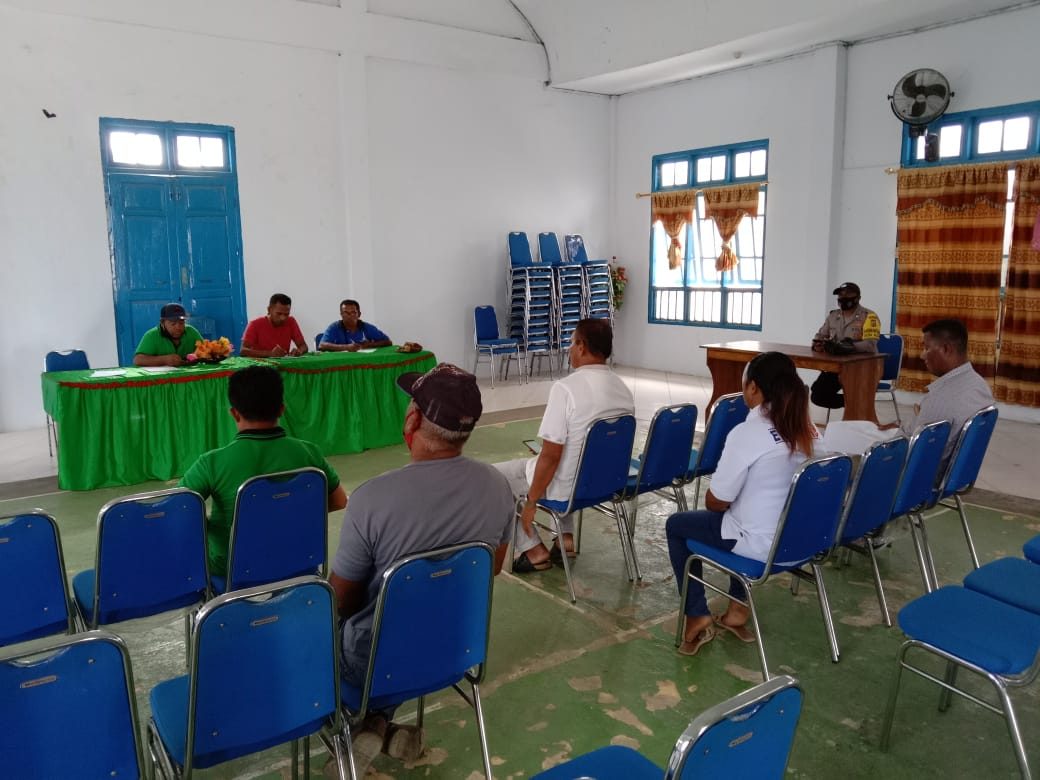 Tribratanews.polrestanimbar.com – Polda Maluku, Polres Maluku Tenggara Barat, Rabu 30 September 2020, pukul 10.00 wit, bertempat di Desa Adaut Kecamatan Selaru Kabupaten Kepulauan Tanimbar Bhabinkamtibmas Desa Adaut Brigpol Markus Iryanto Lambiombir melaksanakan pengamanan rapat musyawarah bersama dengan pengurus Bumdes lain tubun pada Balai Desa Ngri Mase Desa Adaut.