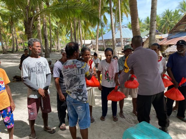 Sebagai bentuk kepedulian, Bhabinkamtibmas di wilayah Perbatasan ini, juga memberikan bantuan sosial berupa Sembako yaitu beras sebanyak 40 Kg yang dikemas dalam 8 kantong plastik dan dibagikan kepada ibu-ibu janda serta orang tua yang sudah lanjut usia yang ada di lokasi rumah kebun Tyafar Minanlel.