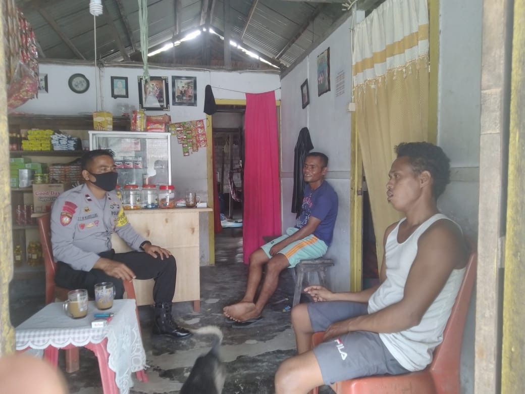 Tribratanews.polrestanimbar.com – Polda Maluku, Polres Maluku Tenggara Barat, Jumat 07 Agustus 2020, pukul 12.45 wit, bertempat di desa Amdasa Kecamatan Wertamrian Kabupaten Kepulauan Tanimbar Bhabinkamtibmas Desa Amdasa Aipda J. I. M. Manullang menyambangi kios Bapak Joni Angwarmase guna memberikan bimbingan dan penyuluhan (Binluh) tentang Adaptasi Kebiasaan Baru dalam menghadapi Wabah Virus Corona (Covid-19) yang saat ini sedang merebah dan meresahkan masyarakat