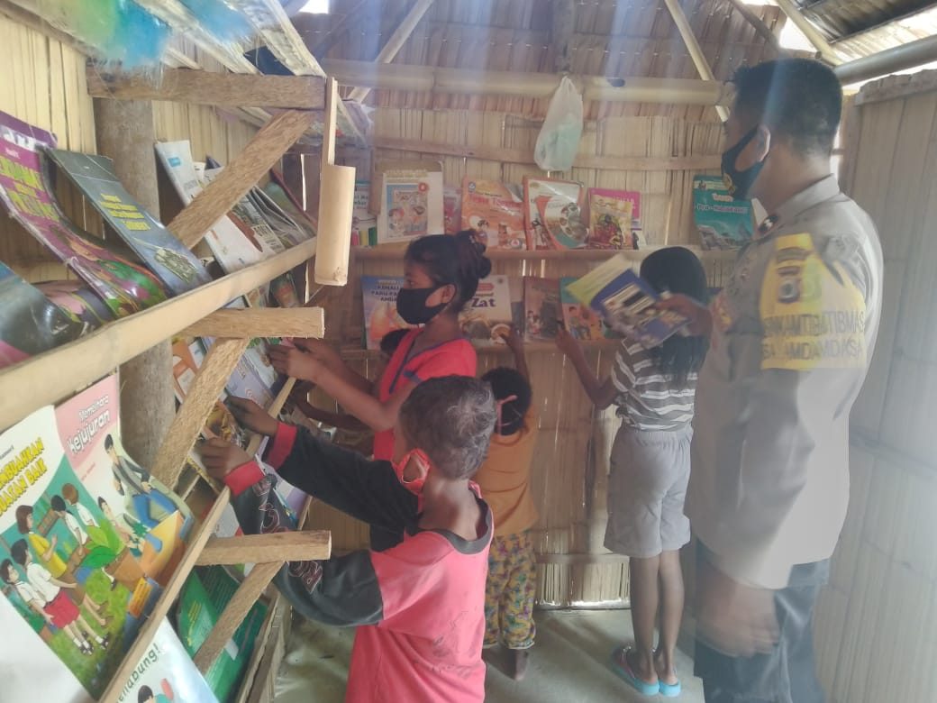 Tribratanews.polrestanimbar.com – Polda Maluku, Polres Maluku Tenggara Barat, Senin 14 Desember 2020, pukul 14.00 wit, bertempat di Taman Baca Kemala Bhabinkamtibmas Kecamatan Wertamrian Kabupaten Kepulauan Tanimbar Bhabinkamtibmas Desa Amdasa Aipda J.I.M. Manullang bhabinkamtibmas melaksanakan program belajar mengajar anak dalam rangka memberikan dorongan untuk mencerdaskan anak bangsa serta membuka peluang waktu belajar membaca anak-anak ditengah-tengah pandemi Covid-19, guna mengurangi waktu bermain anak-anak didesa.