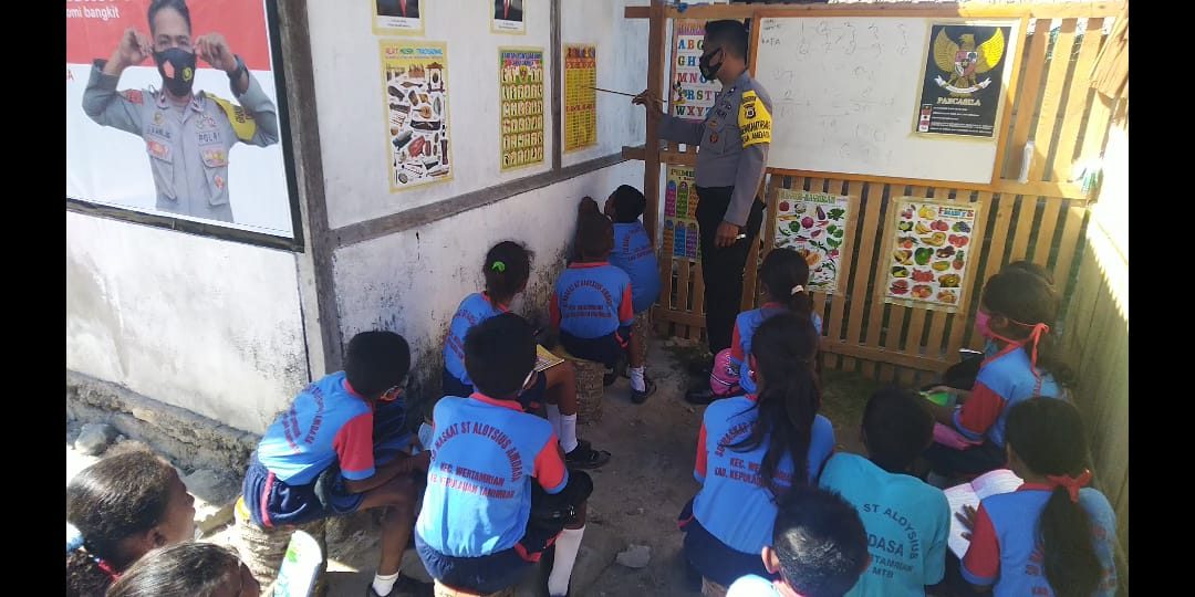 Tribratanews.polrestanimbar.com – Polda Maluku, Polres Maluku Tenggara Barat, Jumat 04 September 2020, pukul 10.15 wit, bertempat di Perpustakaan Bhabinkamtibmas Anak Amdasa Wilitabun Kecamatan Wertamrian Kabupaten Kepulauan Tanimbar Bhabinkamtibmas Desa Amdasa Aipda J. I. M. Manullang mencerdaskan Anak Indonesia dengan program belajar mengajar sambil membaca.