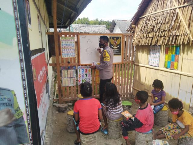 Tribratanews.polrestanimbar.com – Polda Maluku, Polres Maluku Tenggara Barat, Kamis 10 Desember 2020, pukul 10.00 wit, bertempat di Taman Baca Kemala Bhabinkamtibmas Kecamatan Wertamrian Kabupaten Kepulauan Tanimbar Bhabinkamtibmas Desa Amdasa Aipda J.I.M. Manullang Bhabinkamtibmas melaksanakan program belajar terhadap para para anak-anak didesa binaan, dalam rangka menuju Indonesia pintar, walaupun dalam situasi hujan bhabinkamtibmas melaksanakan tetap melaksankan program belajar anak sesuai dengan situasi dan kondisi yang sederhana, guna mendukung program membaca anak pada taman baca kemala bhabinkamtibmas.