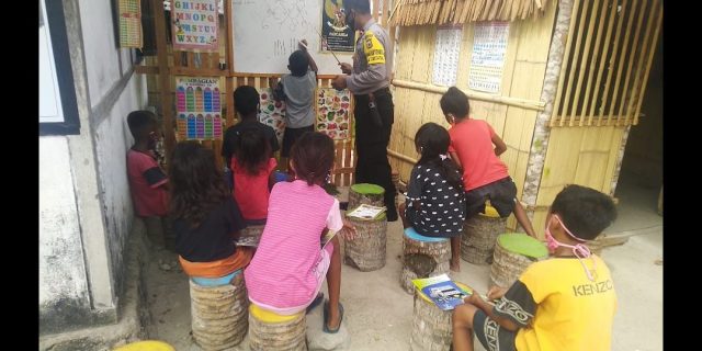 Tribratanews.polrestanimbar.com – Polda Maluku, Polres Maluku Tenggara Barat, Selasa 06 Oktober 2020, pukul 10.00 wit bertempat di Perpustakaan Bhabinkamtibmas Anak Amdasa Wilitabun Kecamatan Wertamrian Kabupaten Kepulauan Tanimbar Bhabinkamtibmas Desa Amdasa Aipda J. I. M. Manullang Bhabinkamtibmas melaksanakan program belajar mengajar sambil membaca anak dengan inofasi sendiri, dalam rangka mencerdaskan anak bangsa ditengah pandemi Covid-19.