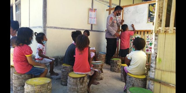 Tribratanews.polrestanimbar.com – Polda Maluku, Polres Maluku Tenggara Barat, Selasa 20 Oktober 2020,pukul 10.00 wit bertempat di Perpustakaan Bhabinkamtibmas Anak Amdasa Wilitabun Kecamatan Wertamrian Kabupaten Kepulauan Tanimbar Bhabinkamtibmas Desa Amdasa Aipda J. I. M. Manullang Bhabinkamtibmas melaksanakan program belajar anak melalui perpustakaan bhabinkamtibmas untuk menuju Indonesia pintar, guna meningkatkan Indonesia cerdas serta mewujudkan Sumber Daya Manusia yang unggul ditengah pandemi, walaupun dengan keterbatasan apa adanya.