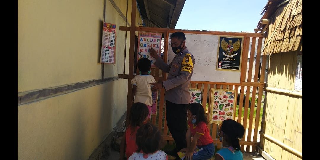 Selama aktifitas sekolah diliburkan sampai dengan saat ini, yang diberikan oleh bhabinkamtibmas guna mengurangi aktifitas bermain anak-anak didesa ditengah situasi pandemi Covid-19, dalam program belajar anak bhabinkamtibmas tetap melaksanakan sesuai dengan protokol kesehatan, antara lain :