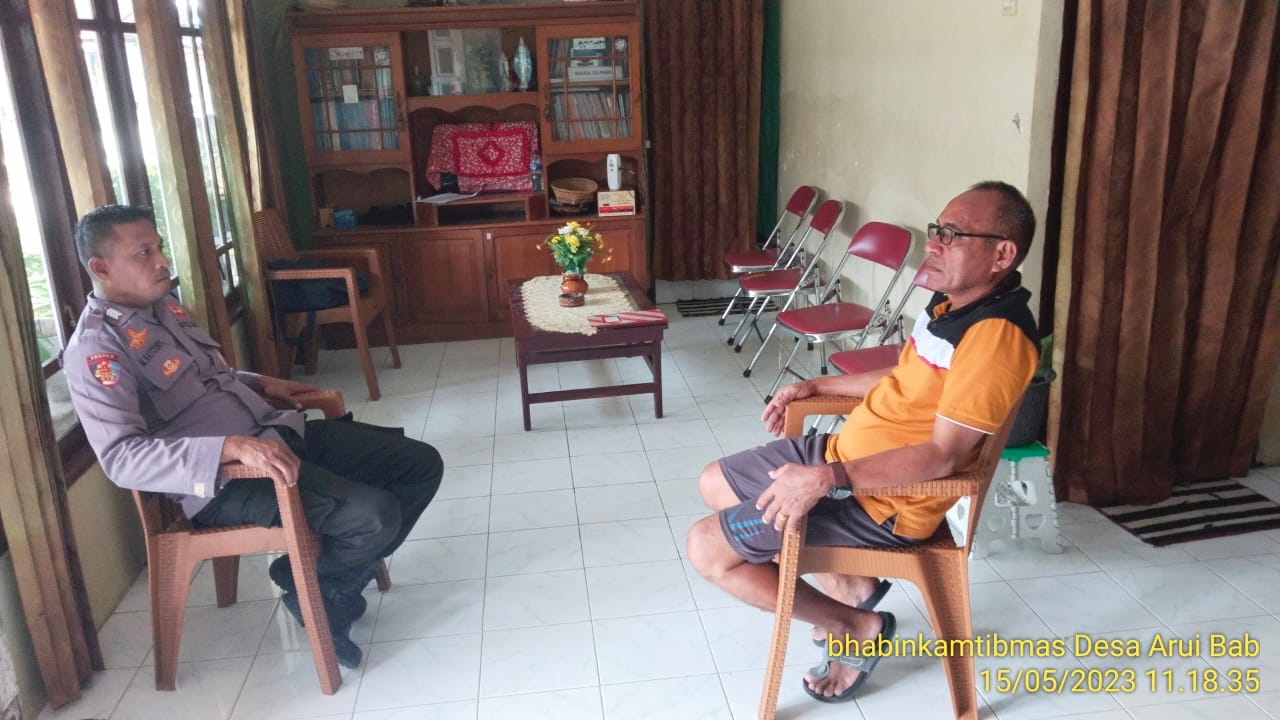 Tribratanews.polrestanimbar.com – Polda Maluku, Polres Kepulauan Tanimbar, Bhabinkamtibmas Desa Arui Bab Bripka M. Batcory melakukan Door to Door Sistem (DDS) dengan Mengunjungi salah satu Warga Binaan yang bertempat di Desa Arui Bab Kecamatan Wertamrian, Kabupaten Kepulauan Tanimbar, Senin (15/05).