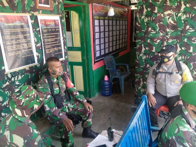 Dalam kunjungan tersebut, Bhabinkamtibmas dan Babinsa bertemu langsung dengan anggota jaga dan Komndan Posko Letu Inf. Husni.