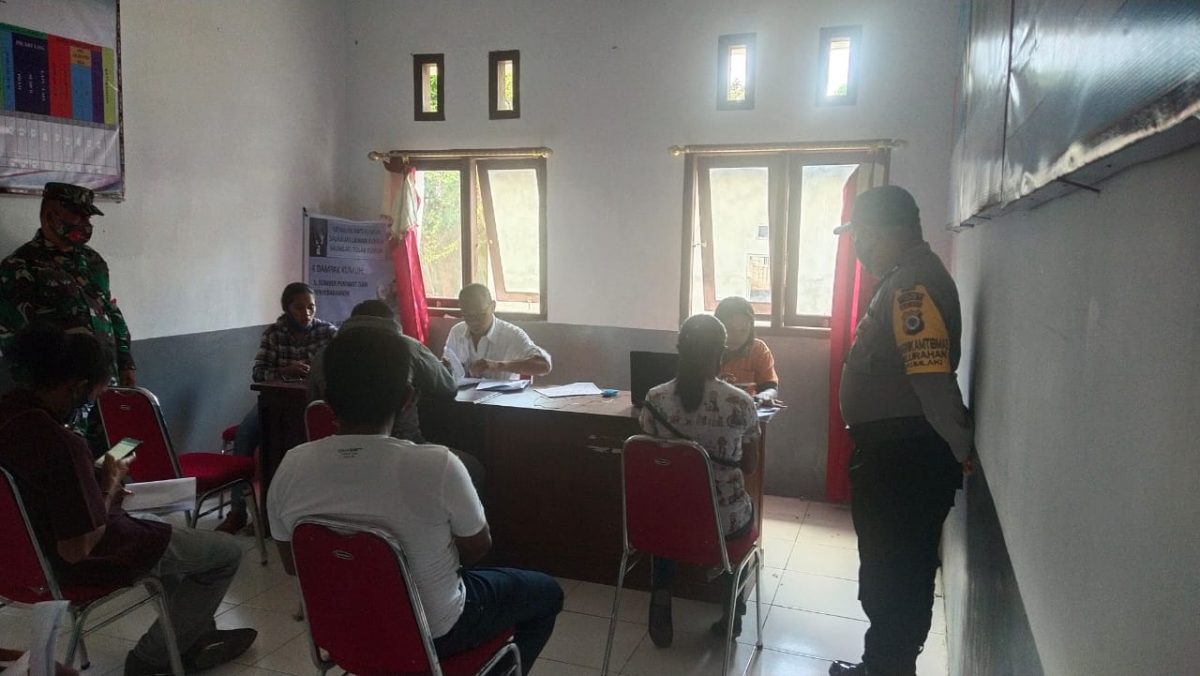 Tribratanews.polrestanimbar.com – Polda Maluku, Polres Maluku Tenggara Barat, Selasa 13 Oktober 2020, pukul 10.35 wit, bertempat di kantor Kelurahan Saumlaki, Kecamatan Tanimbar Selatan, Kabupaten Kepulauan Tanimbar Bhabinkamtibmas Kelurahan Saumlaki Brigpol Alfi Toisuta bersama Babinsa Kelurahan Saumlaki Sertu L. Lerebulan dan 1 anggota PAM dari Sat Sabhara Polres Kepulauan Tanimbar Bripka J. Heumasse mendampingi Petugas Pembagi sekaligus pengambilan data dari Kantor Pos Saumlaki, mengamankan jalannya pembagian Bansos BTS (Bantuan Tunai Sosial) Tahap Dua kepada masyarakat Kelurahan Saumlaki dan Kelurahan Saumlaki utara.