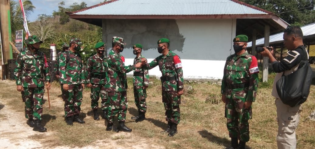 Selesai memeriksa Pos Kotis Yonif 734 yg berada di Desa Bomaki, Bapak Pangdam XVI Patimura bergeser ke Pos Ops Pratugas yang ada di Desa Lorulun.