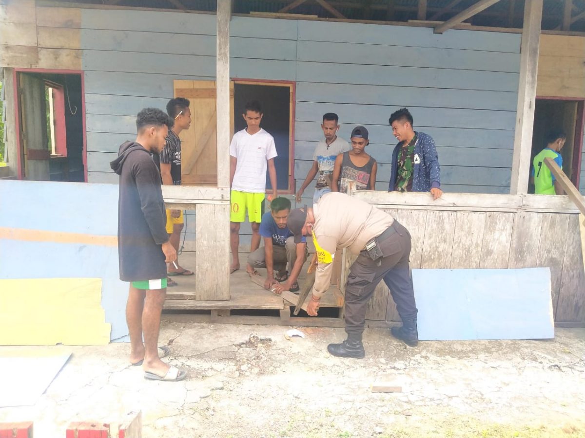 Tribratanews.polrestanimbar.com – Polda Maluku, Polres Maluku Tenggara Barat, Senin 28 September 2020, pukul 13.21 wit bertempat di RT.09 (Posko Pemuda) Desa Bomaki Kecamatan Tanimbar Selatan Kabupaten Kepulauan Tanimbar Bhabinkamtibmas Desa Bomaki Bripka S. E. S. Mitakda melaksanakan giat sambang kepada Pemuda Desa Bomaki yang sedang memperbaiki Posko yang sudah rusak dan membantu untuk memperbaiki posko tersebut.