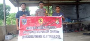 Tribratanews.polrestanimbar.com – Polda Maluku, Polres Kepulauan Tanimbar, Bhabinkamtibmas Desa Bomaki Bripka R. Maulany mencegah tindakan Pungli dengan Mensosialisasikan Perpres Nomor 87 tahun 2016, tentang Satgas Saber Pungli Kepada Beberapa masyarakat di desa Bomaki, Kecamatan Tanimbar Selatan, Kabupaten Kepulauan Tanimbar, Rabu (07/06).