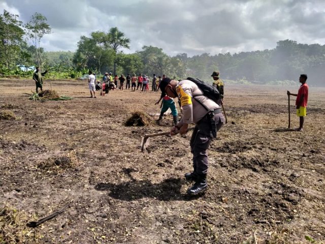 Tribratanews.polrestanimbar.com – Polda Maluku, Polres Maluku Tenggara Barat, Jumat 17 Juli 2020, pukul 10.00 wit, bertempat Desa Bomaki Kecamatan Tanimbar Selatan, Kabupaten Kepulauan Tanimbar Bhabinkamtibmas Desa Bomaki Bripka S. E. S. Mitakda bersama Kepala Desa Bomaki Bapak Virgilius Lamere dan Pemuda Desa Bomaki serta masyarakat Desa Bomaki dari RT/01 sampai RT/12 melakukan Kerja bakti dilapangan Bola kaki.