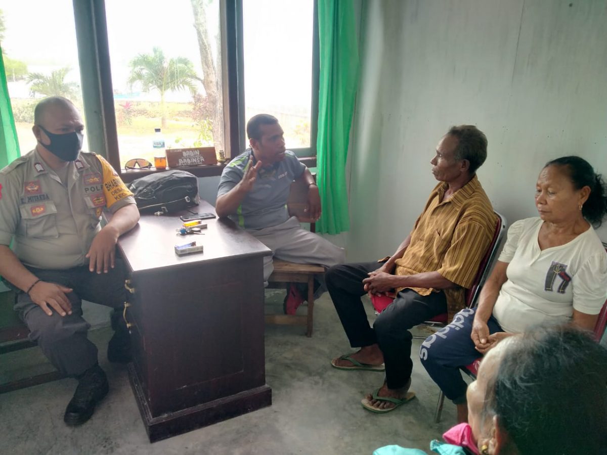 Bhabinkamtibmas Desa Bomaki Bripka S. E. S. Mitakda bersama Babinsa Bomaki Sertu Jhon R. Weniliwang melakukan Problem Solving/penyelesaian masalah antara Saudara Agustinus Fadirsyair dengan saudara Aven Fadirsyair.