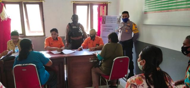 Bhabinkamtibmas dan Babinsa Kelurahan Saumlaki serta pers Samapta Polres MTB Kawal Jalannya Pembagian BST di dua Kelurahan Saumlaki