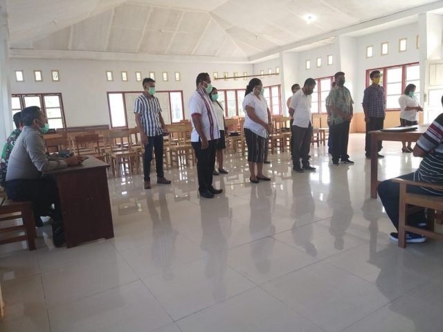 Tribratanews.polrestanimbar.com – Polda Maluku, Polres Maluku Tenggara Barat, Kamis 18 Juni 2020, pukul 11.20 wit bertempat di Balai Desa Lermatang Kecamatan Tanimbar Selatan Kabupaten Kepulauan Tanimbar Bhabinkamtibmas Desa Lermatang Briptu T. O. Daniel, S.H., bersama Babinsa Desa Lermatang Sertu R. Timisela menghadiri sekaligus mengamankan jalannya kegiatan Pelantikan Panitia Pemilihan Kepala Desa Lermatang.