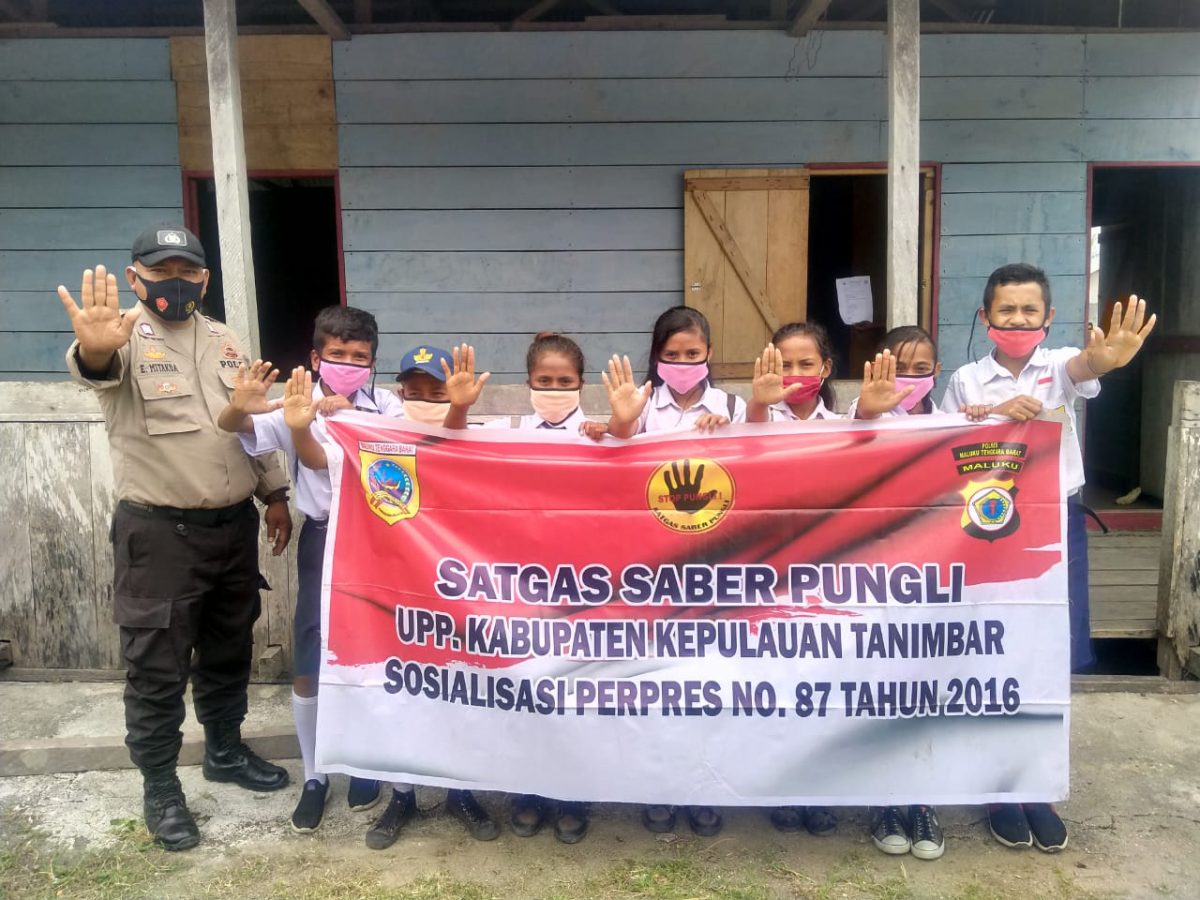 Tribratanews.polrestanimbar.com – Polda Maluku, Polres Maluku Tenggara Barat, Kamis 08 Oktober 2020, pukul 11.48 wit bertempat di Depan SMP Negeri-5 Tanimbar Selatan Desa Bomaki Kecamatan Tanimbar Selatan, Kabupaten Kepulauan Tanimbar Bhabinkamtibmas Desa Bomaki Bripka S. E. S. Mitakda melaksanakan giat sosialisasi Perpres Nomor 87 Tahun 2016 tentang Satgas Saber Pungli (Satuan Tugas Sapu Bersih Pungutan Liar) kepada siswa dan siswi SMP Negeri-5 Desa Bomaki Kecamatan Tanimbar Selatan Kabupaten Kepulauan Tanimbar.