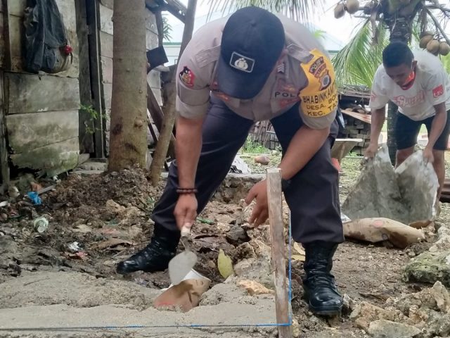 Bhabinkamtibmas Desa Bomaki BRIPKA S.E.S MITAKDA, Melakukan Kunjungan ke Rumah Bapak Hery Laiyan sekaligus bersama – sama membantu Warga yang sedang mambangun Fondasi rumah mereka.