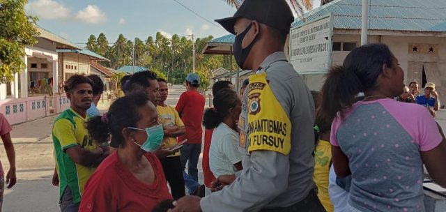 Tribratanews.polrestanimbar.com – Polda Maluku, Polres Maluku Tenggara Barat, Sabtu 06 Juni 2020, pukul 14.30 wit bertempat di Desa Fursuy, Kecamatan Selaru, Kabupaten Kepulauan Tanimbar Bhabinkamtibmas Desa Fursuy BRIPTU ELIEZER DELON KOLOHUWEY mendampingi Pejabat desa Fursuy Bpk ELVIS FENTJE FORDATKOSU, SE bersama pemerintah desa Fursuy dan Tim satgas covid-19 untuk melaksanakan aksi sosial pembagian masker Kesehatan kepada masyarakat desa Fursuy.