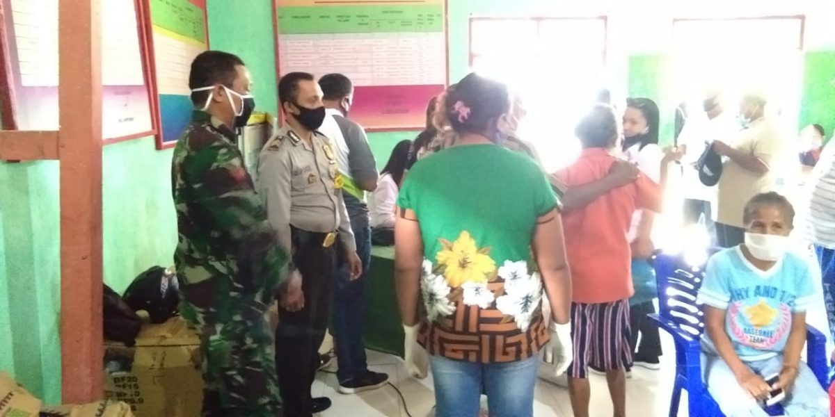Bhabinkamtibmas Desa Kabiarat BRIGPOL D. POCERATU Bersama Babinsa KOPTU E. ANGWARMASSE, Menghadiri Giat penyaluran/pembagian bantuan sosial (BANSOS) dari DINAS SOSIAL KKT di desa kabiarat.