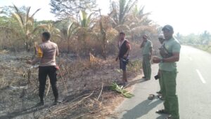 Mengetahui informasi terkait adanya kebakaran Lahan, Bhabinkamtibmas dengan sigap dibantu anggota Linmas melakukan pengecekan terhadap lokasi tersebut, yang dimana pada lokasi kebakaran tersebut dilakukan pembersihan lahan kebun oleh pemiliknya namun pemiliknya lupa memadamkan api sehingga membakar kurang lebih 10 hingga 25 meter lokasi lahan dari jalan utama.