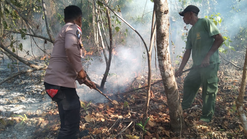 Perlu diketahui bahwa, Bhabinkamtibmas bersama anggota Linmas turun ke lokasi dan memadamkan Kebakaran Hutan dan Lahan tersebut dengan menggunakan alat seadanya. Mengingat akses untuk mendapatkan air guna memadamkan api dari lokasi tersebut terbilang jauh sehingga hanya bermodalkan ranting pohon.