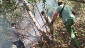 Tribratanews.polrestanimbar.com – Polda Maluku, Polres Kepulauan Tanimbar, Bhabinkamtibmas Desa Keliobar Bripda J. Narahawarin Bersama 3 anggota Linmas berhasil padamkan api akibat kebakaran Hutan dan Lahan, Minggu (03/09).