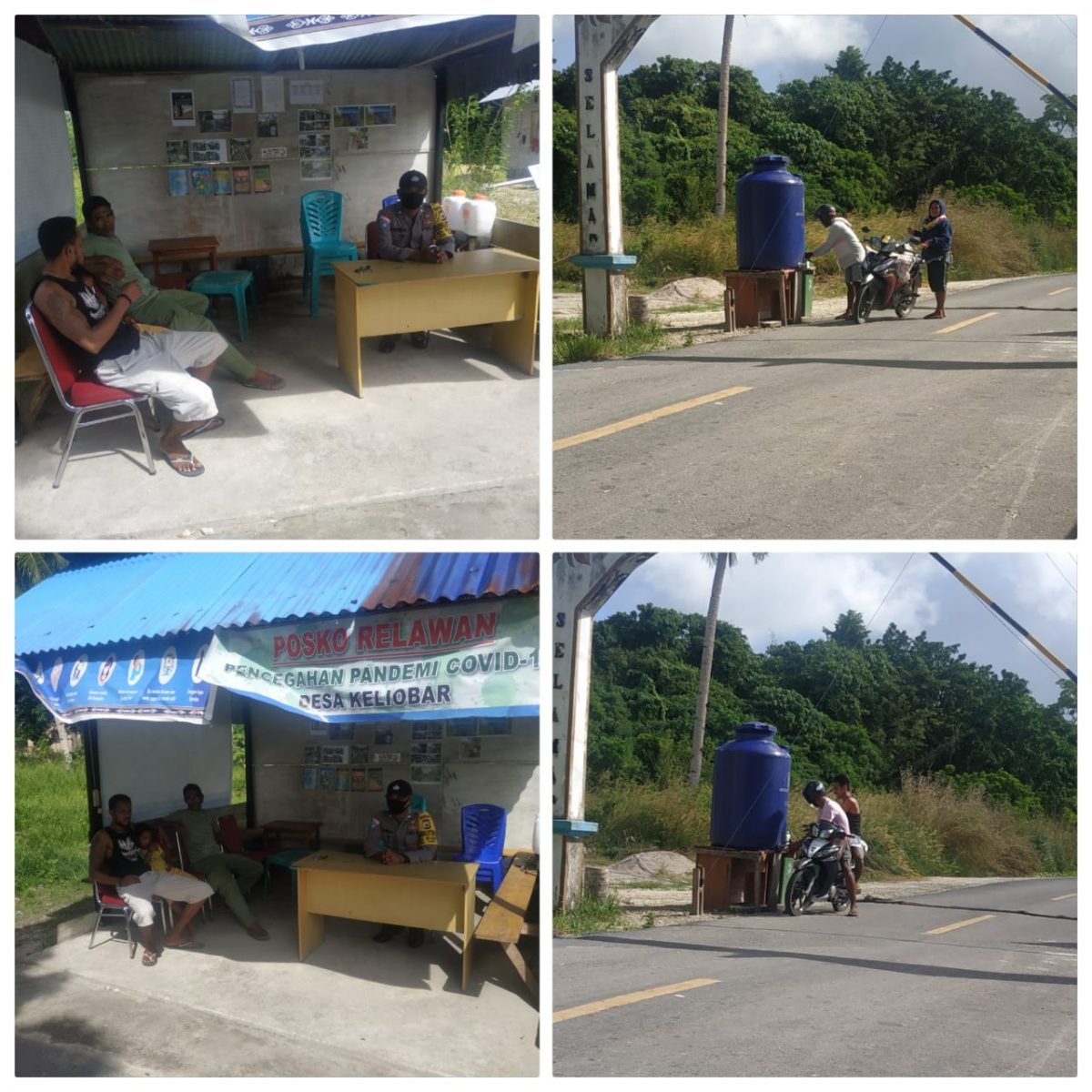 Bhabinkamtibmas Desa Keliobar Pantau Aktifitas Warga Pada Posko Covid 19 Desa