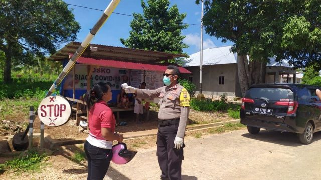 Tribratanews.polrestanimbar.com – Polda Maluku, Polres Maluku Tenggara Barat, Kamis tanggal 7 Mei 2020, pukul 11.10 Wit, bertempat di Desa Lermatang Kecamatan Tanimbar Selatan, Kabupaten Kepulauan Tanimbar. Bhabinkamtibmas Desa LermatangĀ BRIPTU T. O. DANIEL, S.H, Bersama dengan Relawan Covid-19 Desa Lermatang pada Posko Penanggulangan Penyebaran Coronavirus (Covid-19). Melakukan Pendataan, pengecekan Suhu Tubuh, mengarahkan agar mencuci tangan sebelum masuk desa kepada Setiap Masyarakat yang masuk ke dalam Desa Lermatang.