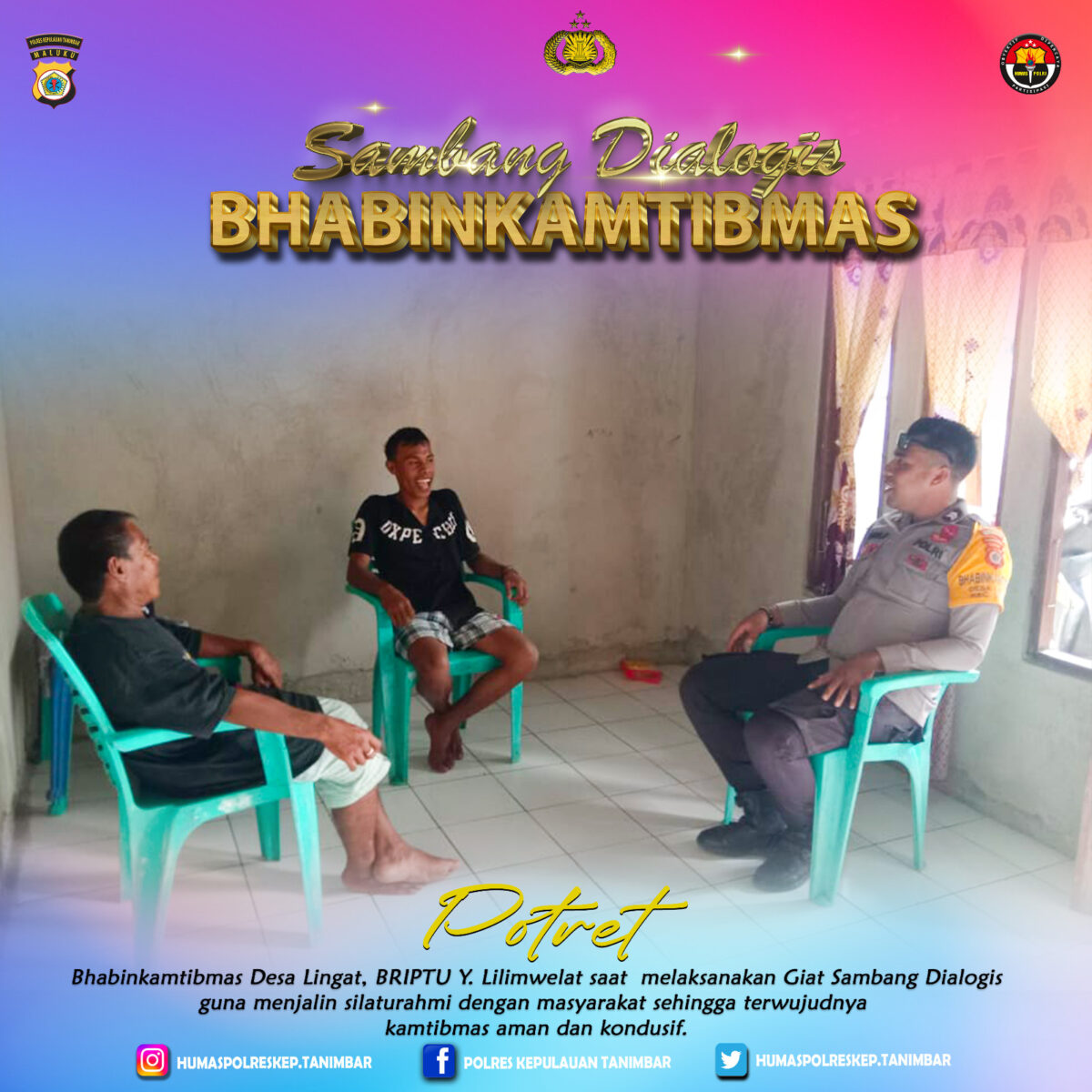 Tak lupa Bhabinkamtibmas Selalu menyampaikan kepada Warga Masyarakat desa Binaan tentang adanya akun Medsos Bhabinkamtibmas Desa Lingat dan Polsek Selaru berupa FB , IG , Twitter dan nomor WhatsApp Bhabinkamtibmas Desa Lingat serta nomor WhatsApp Polsek Selaru.