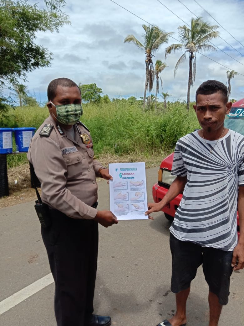 Tribratanews.polrestanimbar.com – Polda Maluku, Polres Maluku Tenggara Barat, Sabtu tanggal 20 April 2020, Pukul 11.15 wit, bertempat di Desa Lorulung Kecamatan Wertamrian Kabupaten Kepulauan Tanimbar. Bhabinkamtibmas Desa Lorulung Bripka D.Ruhupessy melaksanakan kegiatan pembagian browsur himbauan terkait 6 (enam) langkah cuci tangan pakai sabun untuk mencegah virus Corona ( Covid 19 ) yang sedang terjadi di Indonesia.