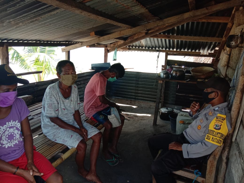 Bhabinkamtibmas Desa MATAKUS BRIGPOL BRIAN CHRISTOFFEL, Menyambangi dan melaksanakan giat Binluh kepada keluarga Bapak MELKIOR BOINSERA yang sementara duduk dengan keluarga di rumah kebun.