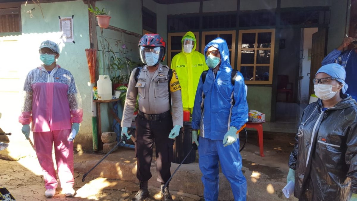 Bhabinkamtibmas bersama Tim Relawan, menyambangi rumah ke rumah dari Warga serta perkantoran Desa Rumah Salut, satu persatu rumah warga serta kantor dilakukan Penyemprotan cairan disinfektan, hal ini bertujuan untuk membunuh kuman/virus sekaligus mencegah penyebaran dari Virus Corona atau Covid 19.