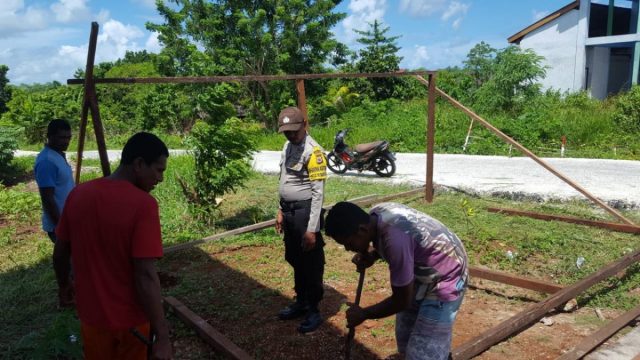 Bhabinkamtibmas Desa Rumahsalut Bersinergis Dalam Pembangunan Posko Covid 19