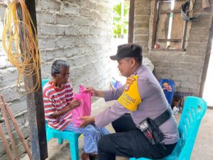 Tribratanews.polrestanimbar.com – Polda Maluku, Polres Kepulauan Tanimbar, Babinkamtibmas Desa Werain Briptu Wanto Isran Melakukan kegiatan Berbagi Kasih kepada janda dan lansia di Desa Werain,Kec. Selaru, Kab. Kepulauan Tanimbar.