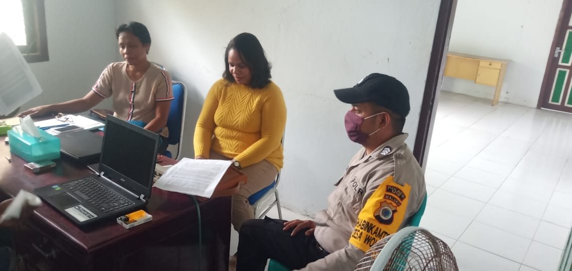 Bhabinkamtibmas Desa Wowonda BRIPKA SIMON NUSMESE bersama Pejabat Desa Wowonda Bapak BENYAMIN KORE dan Staf desa Wowonda.