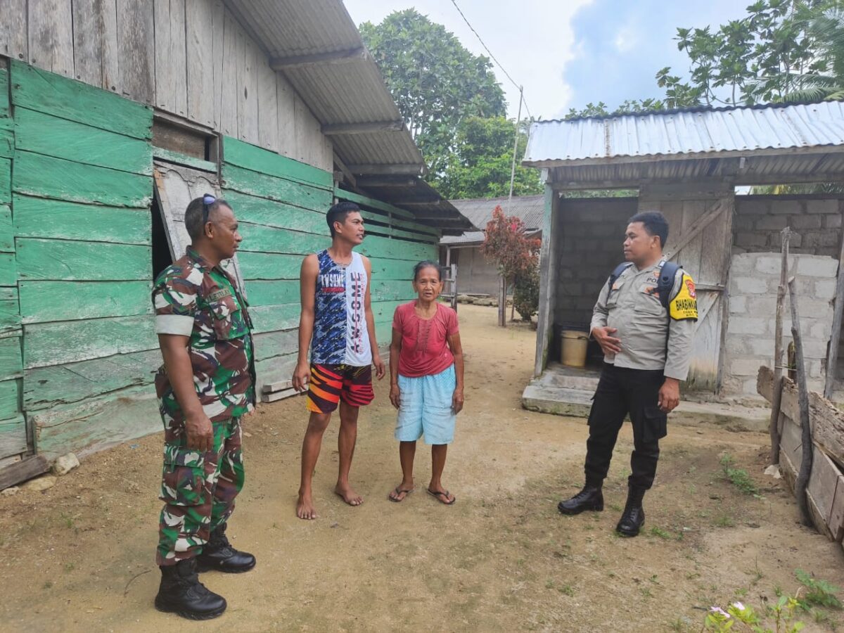 Bhabinkamtibmas dalam kunjungannya ke Keluarga Bapak Didimus Marsiembun, Menghimbau agar tidak terprofokasi dengan isu² yang tidak benar (HOAX) terkait gempa susulan maupun tsunami.