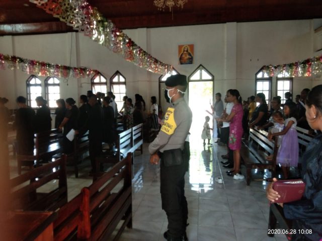 Tribratanews.polrestanimbar.com – Polda Maluku, Polres Maluku Tenggara Barat, Minggu 28 Juni 2020, pukul 09.00 Wit bertempat di Gereja GPM Pniel Desa Eliasa Kecamatan Selaru Kabupaten Kepulauan Tanimbar Bhabinkamtibmas Desa Eliasa Bripda A. Wali menghadiri sekaligus mengamankan giat Ibadah Peneguhan anggota sidi baru Jemaat Kristen Protestan oleh Personil Polsek Selaru.