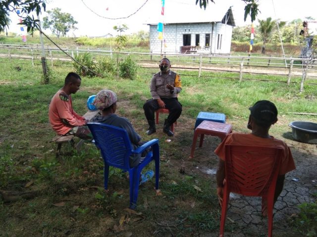 Tribratanews.polrestanimbar.com – Polda Maluku, Polres Maluku Tenggara Barat, Kamis 20 Agustus 2020, pukul 16.30 wit, bertempat di Desa persiapan Ilngei Barat Kecamatan Tanimbar Selatan Kabupaten Kepulauan Tanimbar Bhabinkamtibmas Desa Persiapan Ilngei Barat Bripka N. Kundre menambangi warga yang sementara beristirahat setelah selesai bekerja memahat menara Rumah milik Bapak Natanel Matruty di Desa persiapan Ilngei Barat.