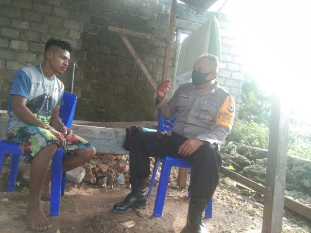 Bhabinkamtibmas Ilngei Barat Sampaikan Pesan Kamtibmas Kepada Bapak Agustinus Ranyabar