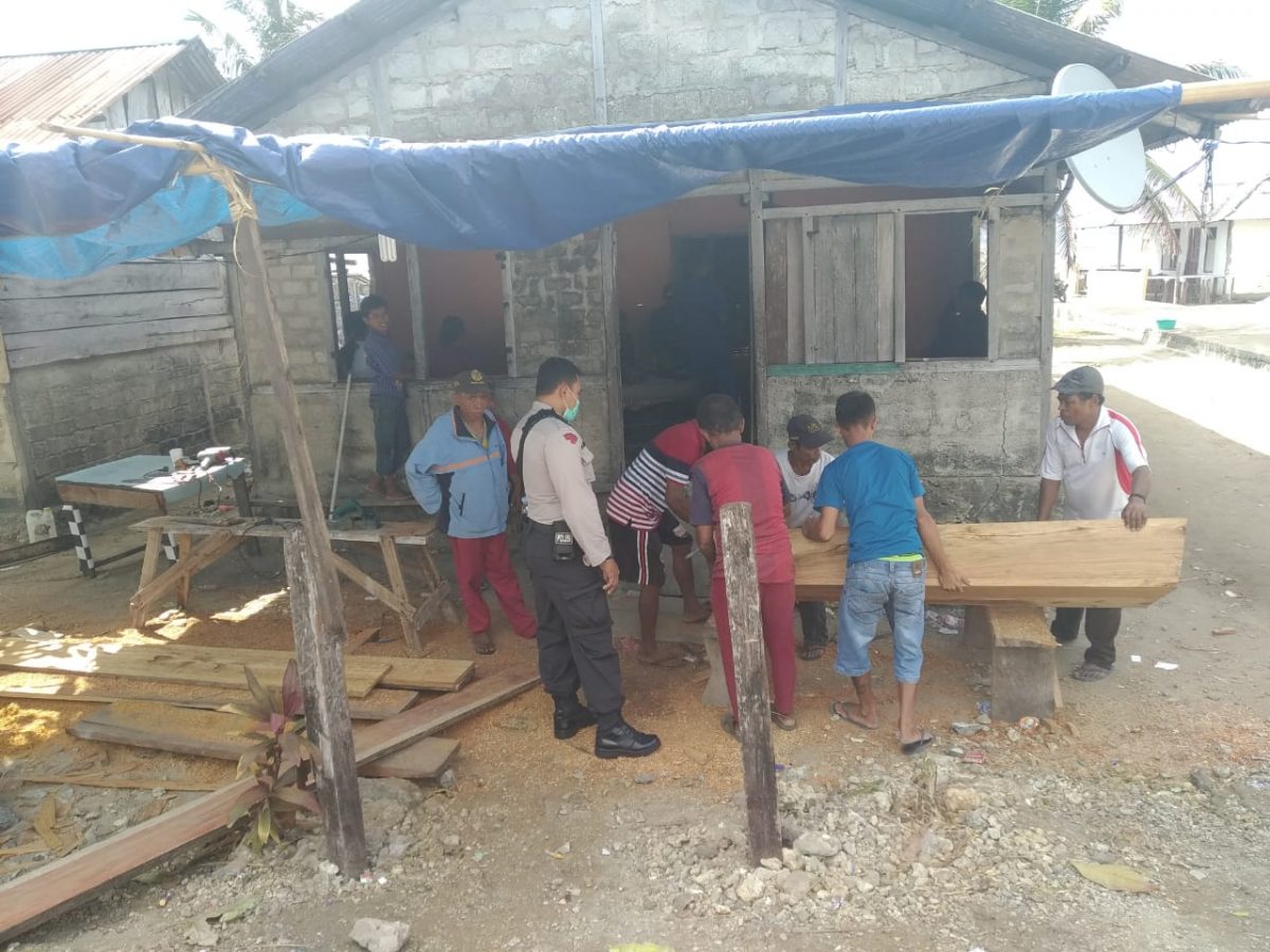 Bhabinkamtibmas Desa Ilngei Brigpol E. R. Tutupary menyambangi keluarga Bapak Yakob Kore yang sedang berduka.