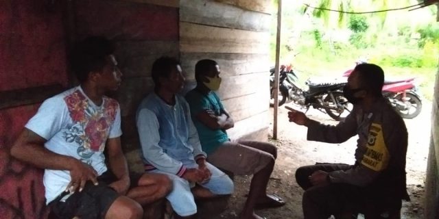 Bhabinkamtibmas Kabiarat dalam Giat Binluh Protokol Kesehatan Covid-19