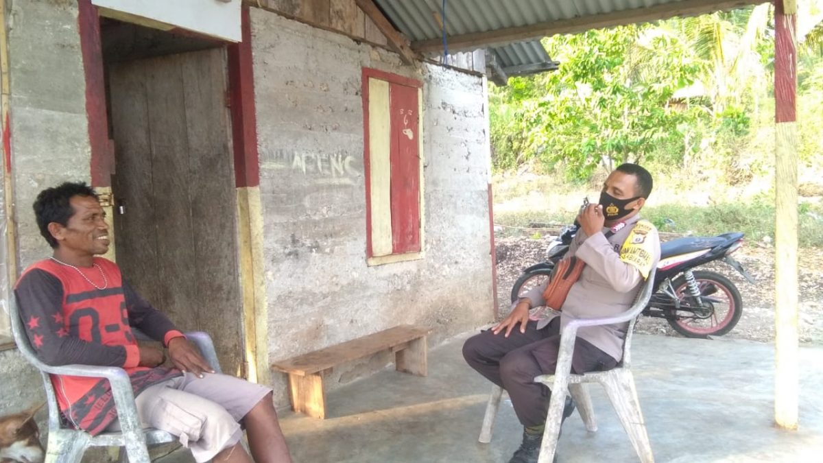 Tribratanews.polrestanimbar.com – Polda Maluku, Polres Maluku Tenggara Barat, Jumat 13 November 2020, pukul 16.00 wit bertempat di Desa Kabiarat Kecamatan Tanimbar Selatan Kabupaten Kepulauan Tanimbar Bhabinkamtibmas Desa Kabiarat Bripka D. Poceratu kunjungi Bapak Michael Subitmel warga Desa Kabiarat guna menyampaikan arahan tentang Edukasi, Sosialisasi dan Himbauan Pendisiplinan penerapan protokol kesehatan pencegahan Covid-19 Adaptasi Kebiasaan Baru dan Undang-Undang RI Nomor 23 tahun 2004 Tentang Penghapusan Kekerasan Dalam Rumah Tangga.