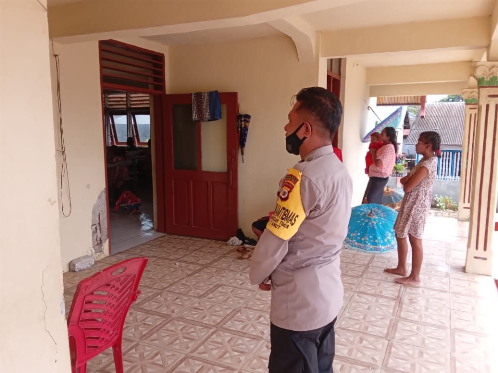 Tribratanews.polrestanimbar.com – Polda Maluku, Polres Kepulauan Tanimbar, Bhabinkamtibmas desa Lamdesar Barat Polsek Tanimbar Utara Aipda K. I. Domlay hadir dan berikan Pengamanan kegiatan Kebaktian Minggu di Gereja GPM Ebenhaezer desa Lamdesar Barat. Minggu (07/08).